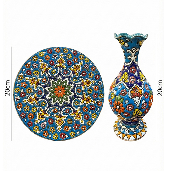 یک عدد گلدان20سانت و یک عدد بشقاب 20 سانت سفال میناکاری شده