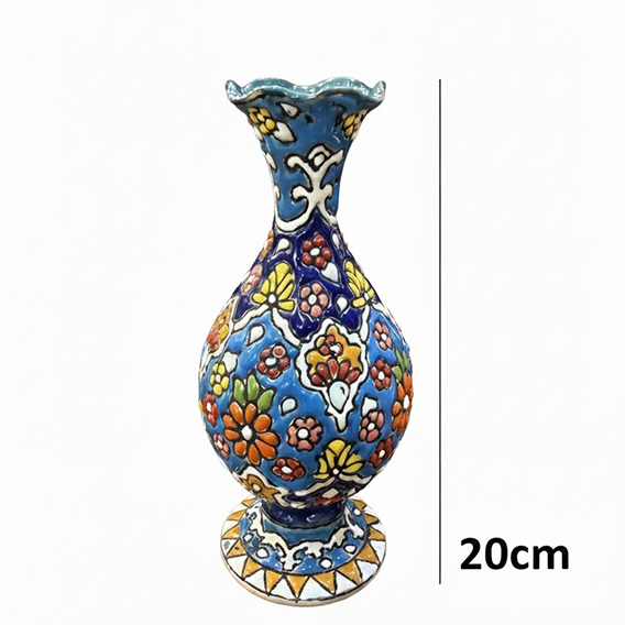 ست گلدان و بشقاب میناکاری سفالی ۲۰ سانتی‌متر (طرح لعاب برجسته) - قیمت اقتصادی